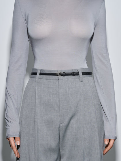 Alvy is a skinny belt crafted from smooth leather and accented with our signature A-shaped buckle.