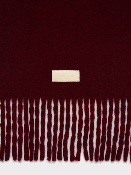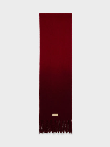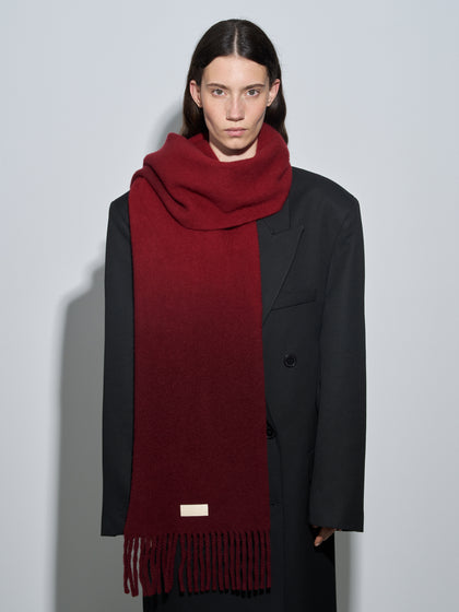 Bria is a chunky wool scarf with a gradient effect, featuring long fringe detailing and a brand-embossed leather label.
