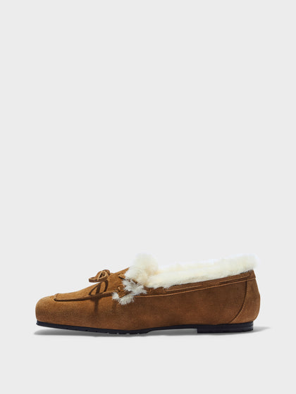 Jasper is richly detailed, featuring a square toe, hand-stitched accents, and a bow on the vamp. Sculpted in soft, tactile suede with a warm shearling lining.