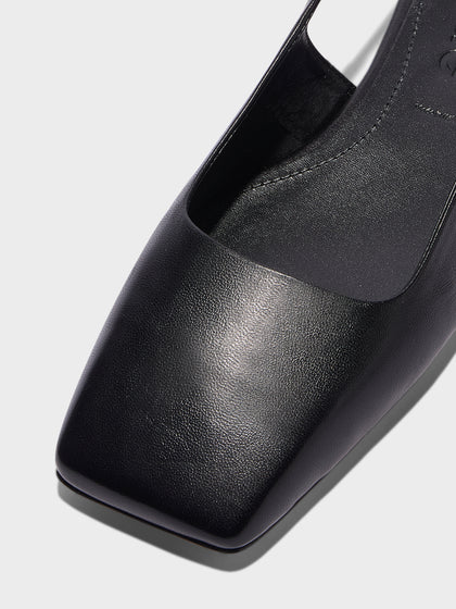 Liya subverts the typical slingback flat, bringing in sharp angles through an exaggerated square toe to balance the slim strap.