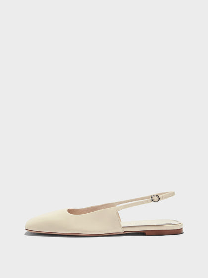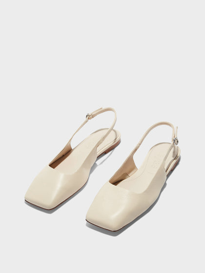Liya subverts the typical slingback flat, bringing in sharp angles through an exaggerated square toe to balance the slim strap.