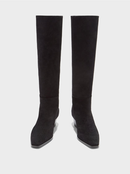 Equal parts confident and effortless, Medea is a pull-on boot with an understated profile, elevated with an angled heel and squared-off pointed toe.