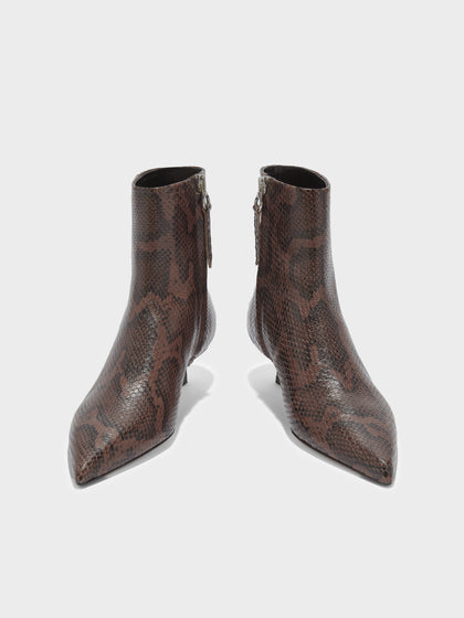 Sofie is a pointed-toe leather boot with a refined silhouette, balanced on a wearable kitten heel.