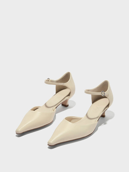 Tillie is our D'Orsay mule style featuring a subtly chiseled toe, delicate ankle strap, and hourglass kitten heel.