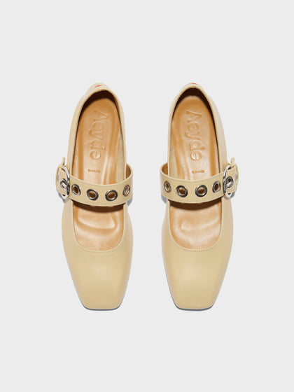 Our signature Mary-Jane flat, now with striking eyelet-studded detailing. Uma feels decidedly modern with its subtly squared toe and delicate tube strap.